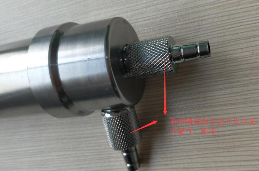 1. 采取氣樣前,應(yīng)將采取器側(cè)面進(jìn)氣接口與孔板流量計(jì)入口端測量嘴連接;頂端出氣接口與瓦斯檢定器連接。